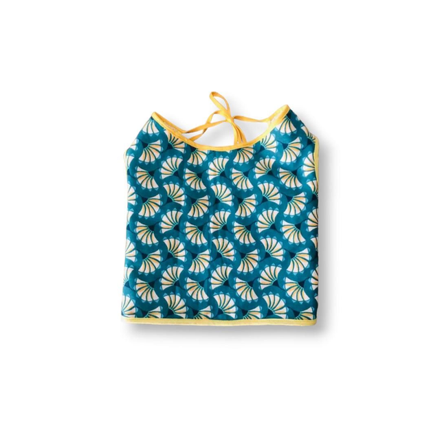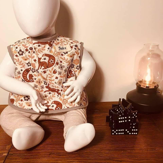 Le bavoir manches courtes Síroé est idéal pour protéger les vêtements de votre enfant (y compris les épaules et les côtés 😉). Il se ferme dans le cou avec des nouettes et convient pour les enfants de 6 à 12 mois.
