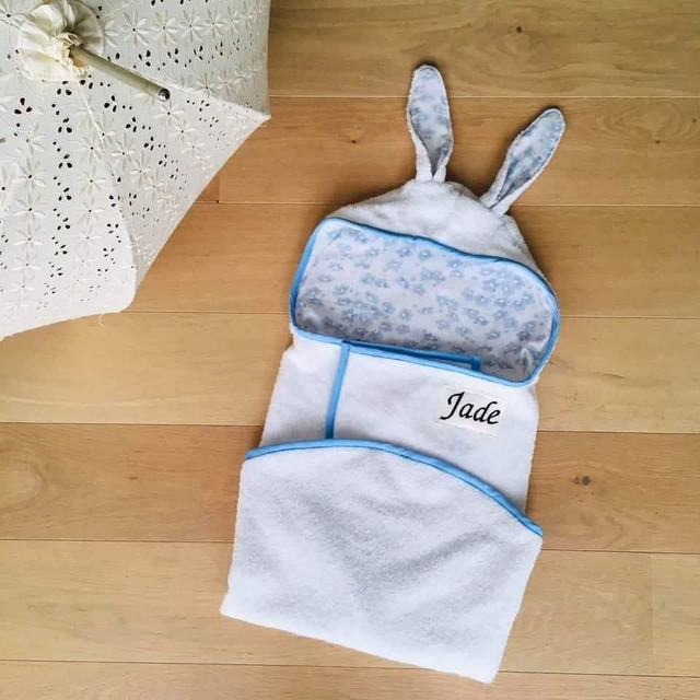 Les capes de bain brodées Síroé sont de jolis cadeaux personnalisés très utiles. Elles sont en tissu éponge 100% coton bio et disponibles dans deux versions : lapin ou ourson.