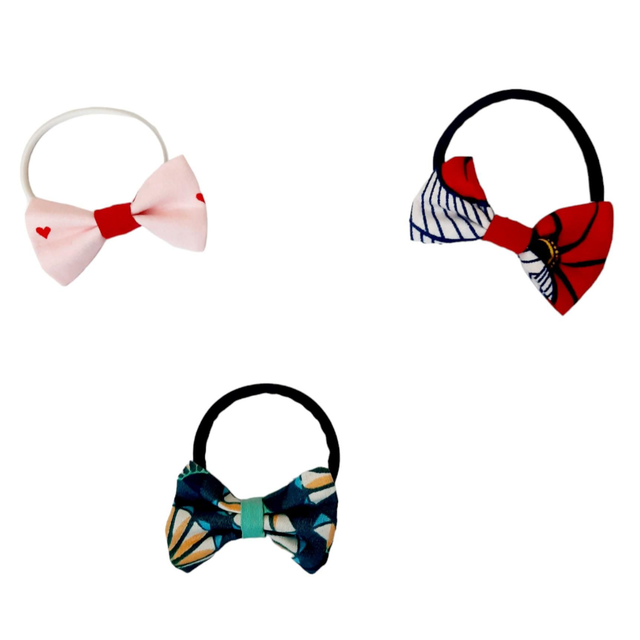 _ Noeud en tissu : +/- L 7,5 cm x l 3,5 cm